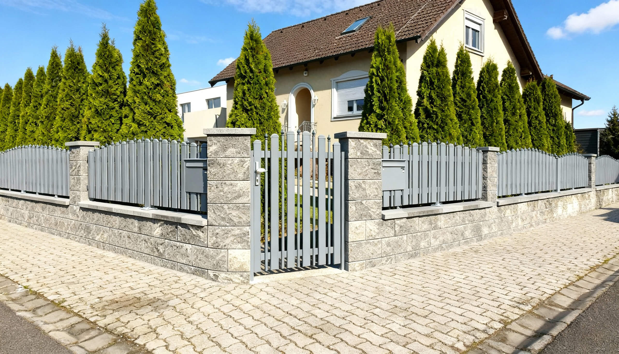 A RAJNA alumínium kerítés teljes takarást biztosító, zárt lambériás kialakításával a maximális biztonság és a teljes intimitás megteremtésére született. Modern, letisztult vonalai elegáns keretet adnak otthonának, miközben gondozásmentes tartósságot kínálnak.